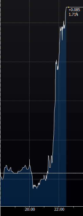 Again, without watching, I can tell you for certain that — with 15 minutes to go — currency traders are giving Mrs. Clinton the W for this evening.