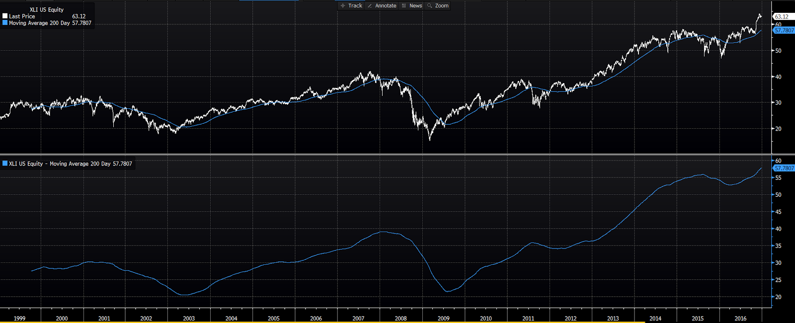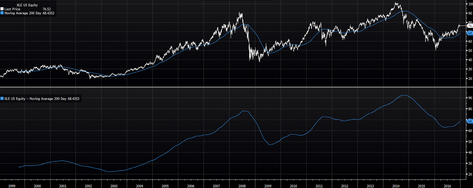 The 200-dma slope and the position of the price confirm that an uptrend began in early 2016.