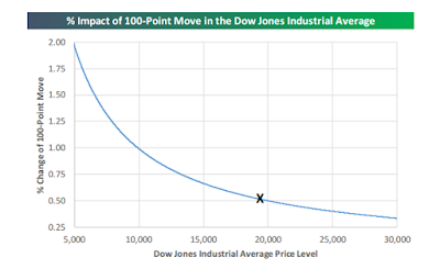 Below is a chart that shows the impact of a 100-point Dow move in percentage terms based on where
