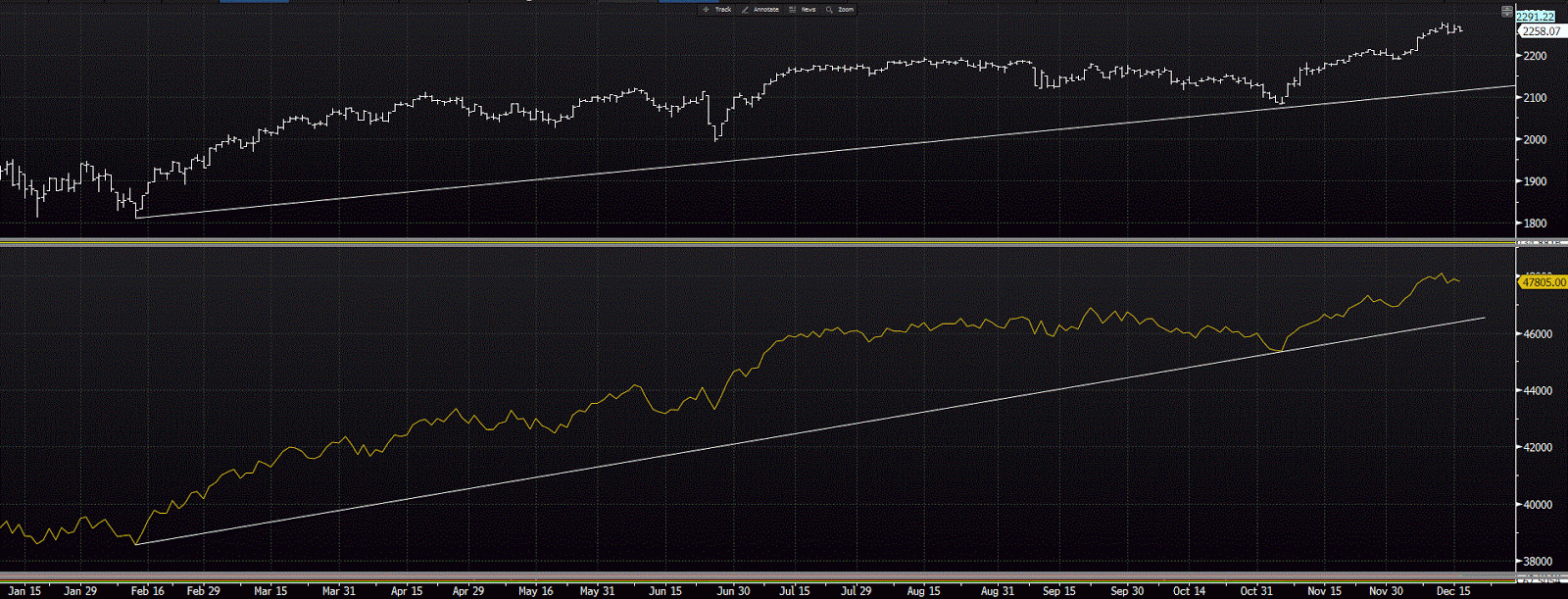 Overall breadth (per the advance/decline line) supports the present trend as well: