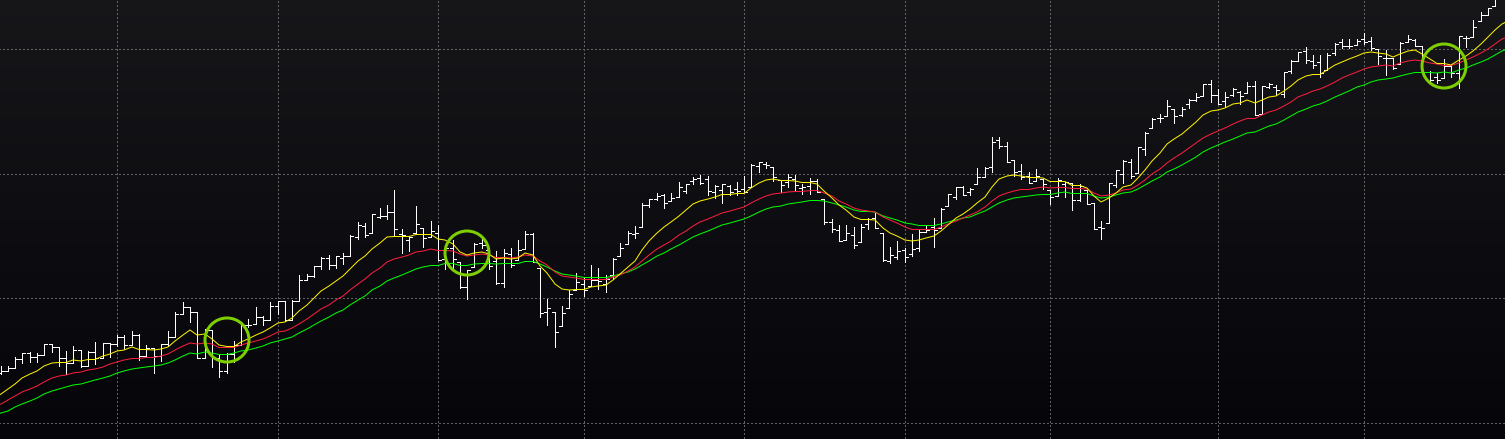 But there were some head fakes along the way. The trader who got antsy and went short when the 10 touched the 20-day EMA got stung — as the market bounced right off of the level where that sell signal was delivered:
