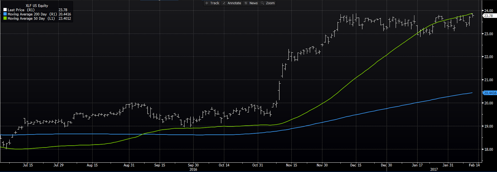 Note how far below its pre-recession high the financial sector ETF was in July 2016. Plus, the recent past performance was certainly nothing to write home about.
