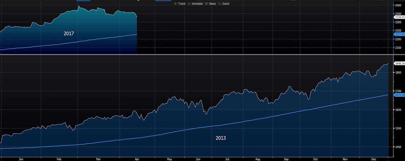 Here again is a look at the last super-good year for U.S. stocks, 2013; note the draw downs throughout the year: