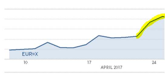 Two weeks ago, herein, we focused a bit on round 1 of France’s presidential election. In our view (totally based on the polls and the odds makers), the election was essentially decided in the first round. Any divergence from the trend in polling and/or in the odds would’ve inspired additional commentary from me.