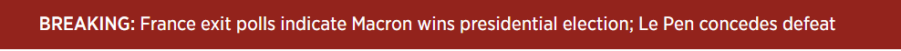 The headlines as I type say that the exit polls have market-favorite Macron becoming France’s next president.