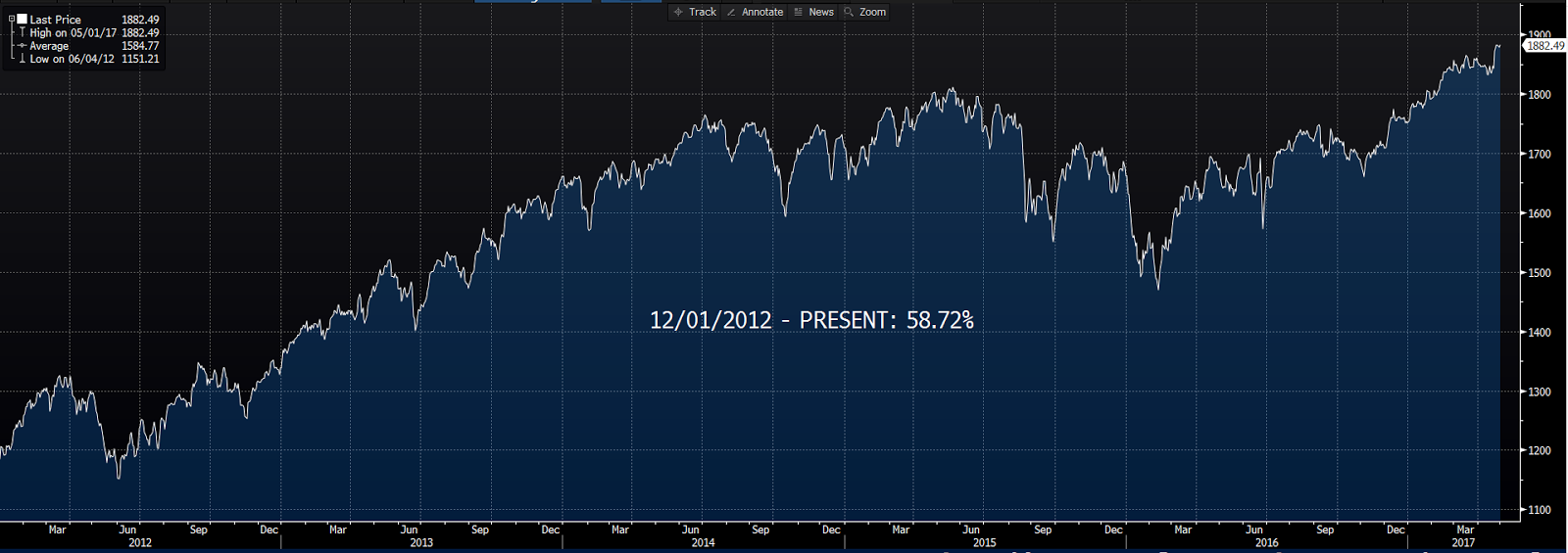 I don’t suspect — given his perspective — he would’ve foreseen a nearly 60% move in global equity markets over the ensuing 5 years.