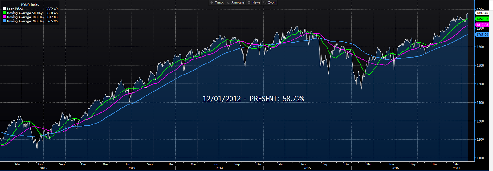 Here’s a look at the MSCI World Stock Index from when Mr. Weatherall completed his book to present: click to enlarge…