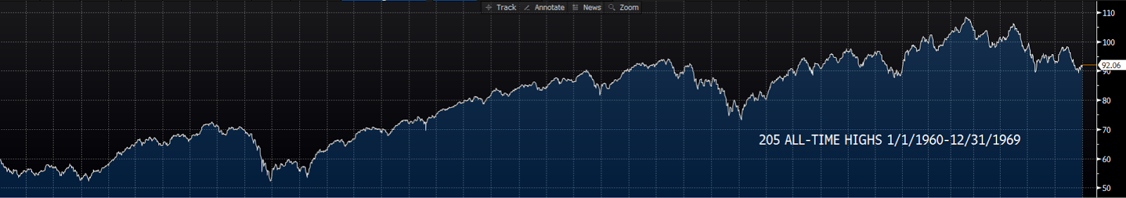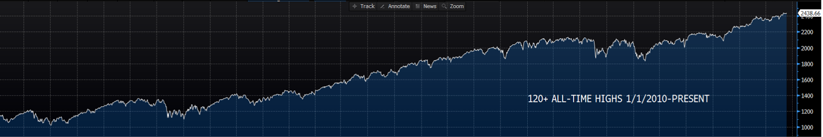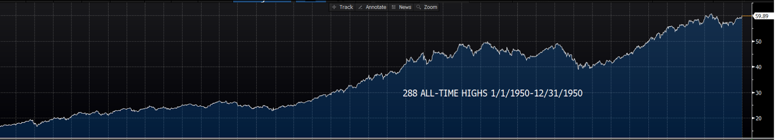 So, since the beginning of 1950, with the S&P 500 at 16.66, the index has seen some 1,146 all-time highs — while closing today at 2,440.