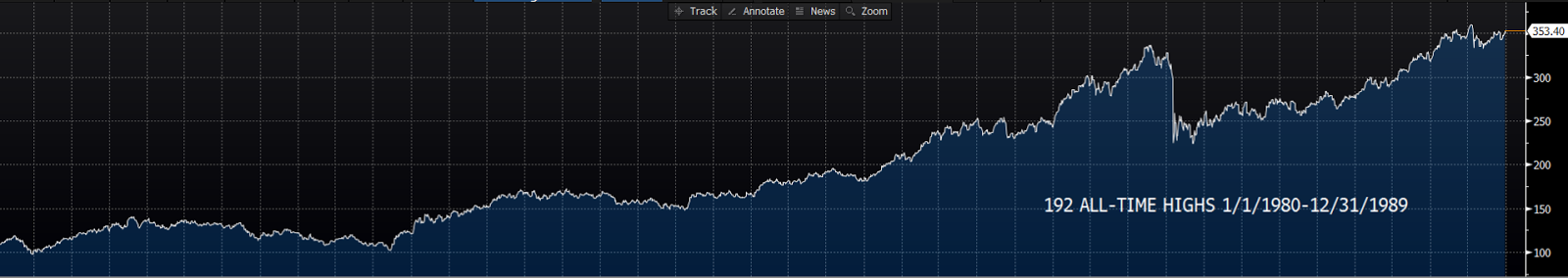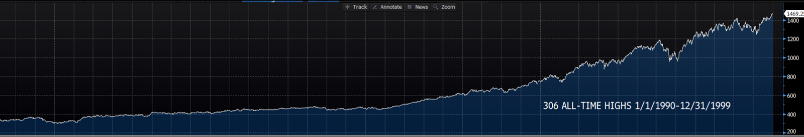 And the current decade, following the 00s’ paltry 13 all-time highs, with north of 120 thus far: