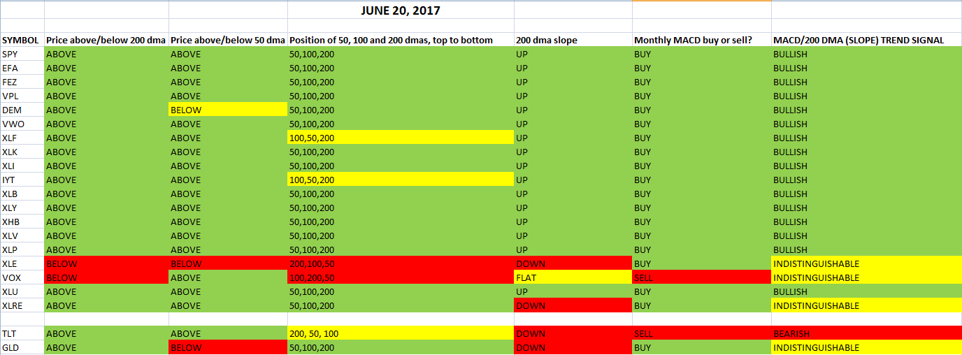Yes, as it relates to equities — save for energy, telecom and real estate investment trusts– that’s the definition of a bullish look. The last two entries are ETFs tracking treasury bonds and the price of gold.