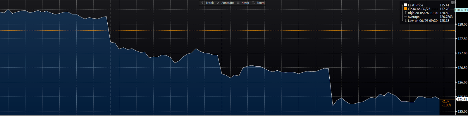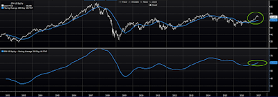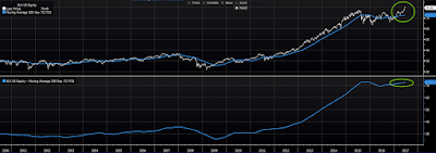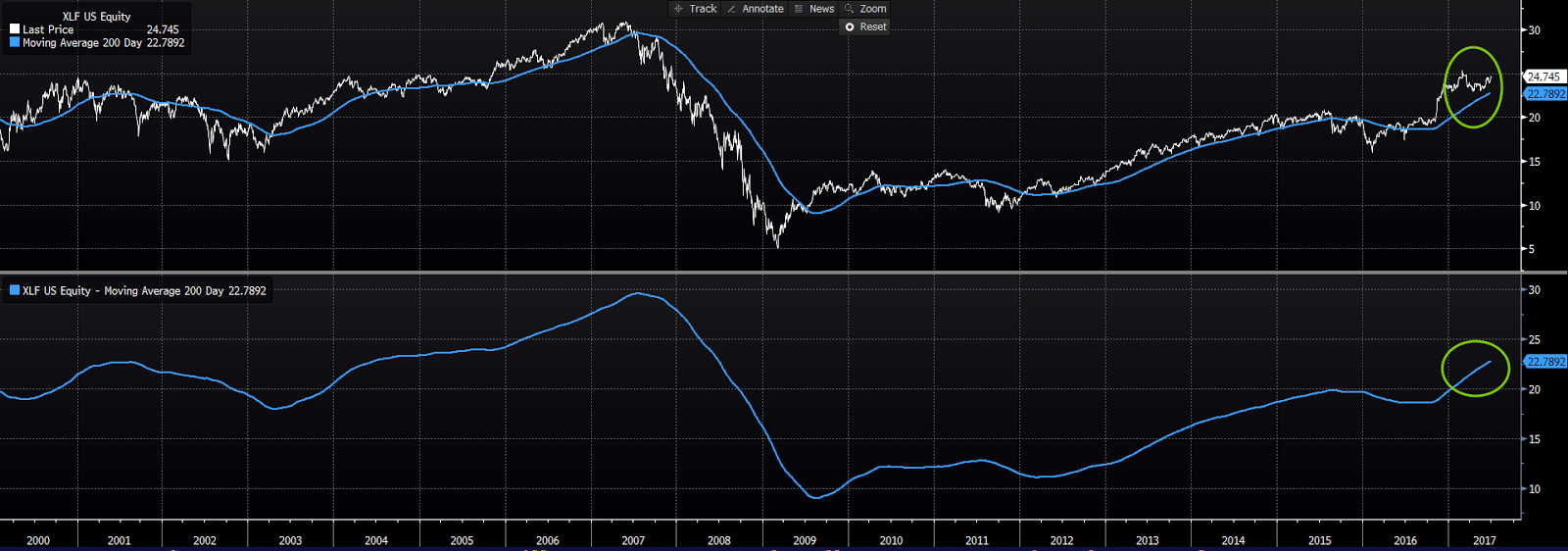 Financials (our heaviest target) appear to have been digesting the post-election surge from last year. The past week has seen them move firmly higher while tech has sold off (read rotation).