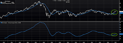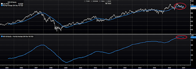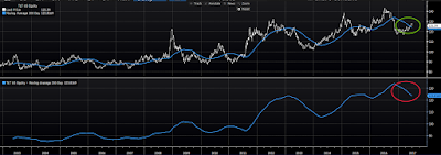 As for bonds, while they certainly haven’t fallen apart — in fact they’ve surprised us with their positive performance to date — the longer-term trend setup looks ugly to us.