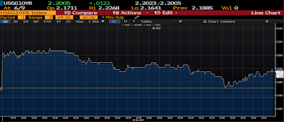 If it’s economic worry, we’d typically see it in bond yields (lower). And while the notable spike in the 10-year at the open dissipated a bit until, ironically, about the same time money rushed in to buy tech stocks, it ended higher on the day: