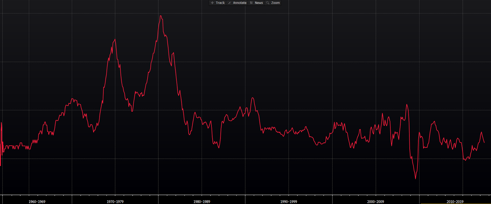 As it turns out, the public narratives of late for these particular items — the first being the yield on the U.S. 10-yr treasury note, the second being inflation, via the Consumer Price Index — conflict with the present longer-term signals of our charts.