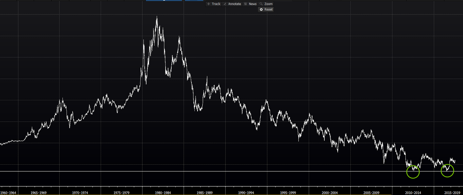 Here’s the first one again, note the recent test (and bounce off) of what may be an historic low: