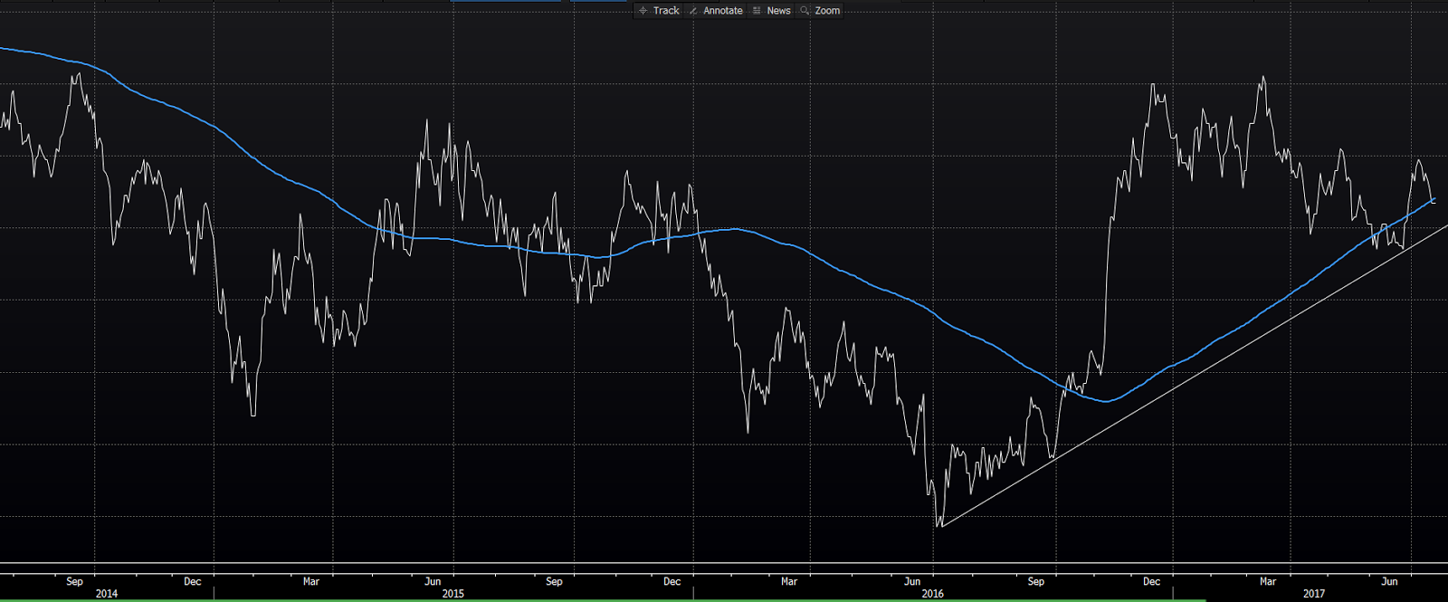 As you can see, I also included a trendline that connects two higher lows off of the July 2016 bottom.