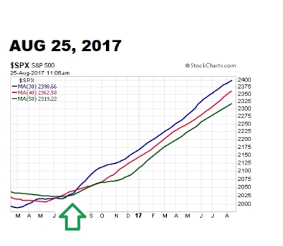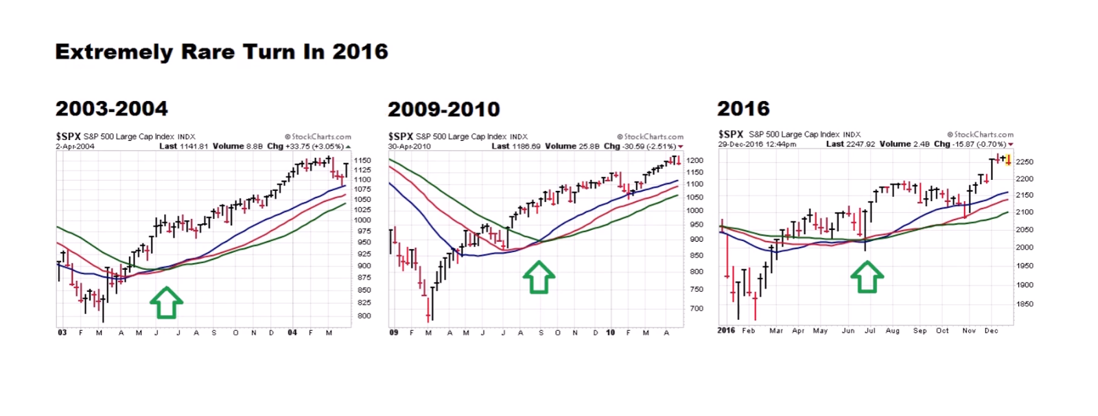 In his weekend presentation Chris Ciovacco uses weekly moving averages to compare the present market setup to past turning points. This nicely complements the presentation we posted yesterday: