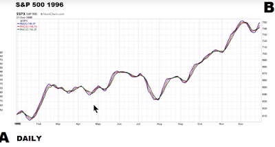 Here’s another look at 1996, only using daily moving averages. Imagine the stress, and, alas, the trading errors, imposed upon those who fell prey to those common missteps: