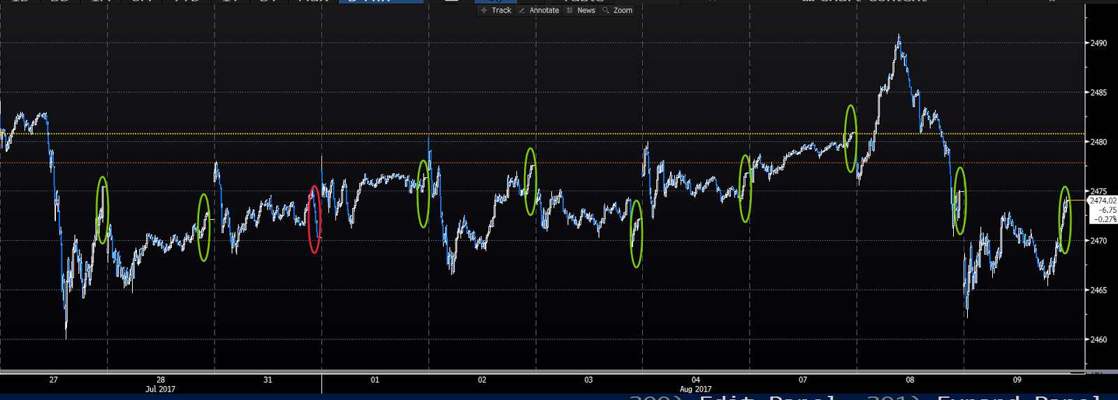 While we opted not to put any new capital to work today, we were keenly interested in how — on a day when geopolitical rhetoric saw global stocks sell off, and bonds and gold rally — the market would finish up. Or, how the “smart” traders see things.
