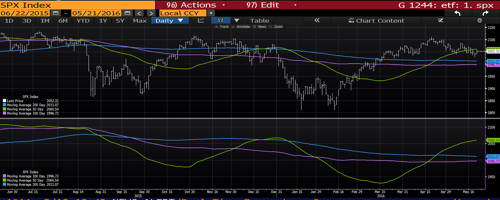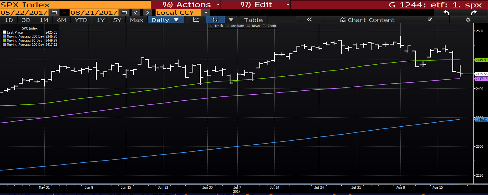 Here’s a 3-month look at the S&P 500 with its 50, 100 and 200-day moving averages: