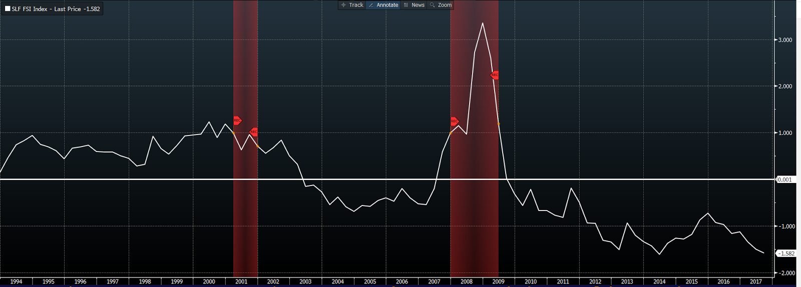 Yes, it’s that simple folks, moving into 2008, conditions were bearish and stress in the economy (read bubble) was inflating mightily. The questions of course for the moment would be, are we presently experiencing bearish or bullish conditions? And, are we in a period of highly inflated economic stress — or are we at this point not nearly rubbing against a financial balloon ready to burst?