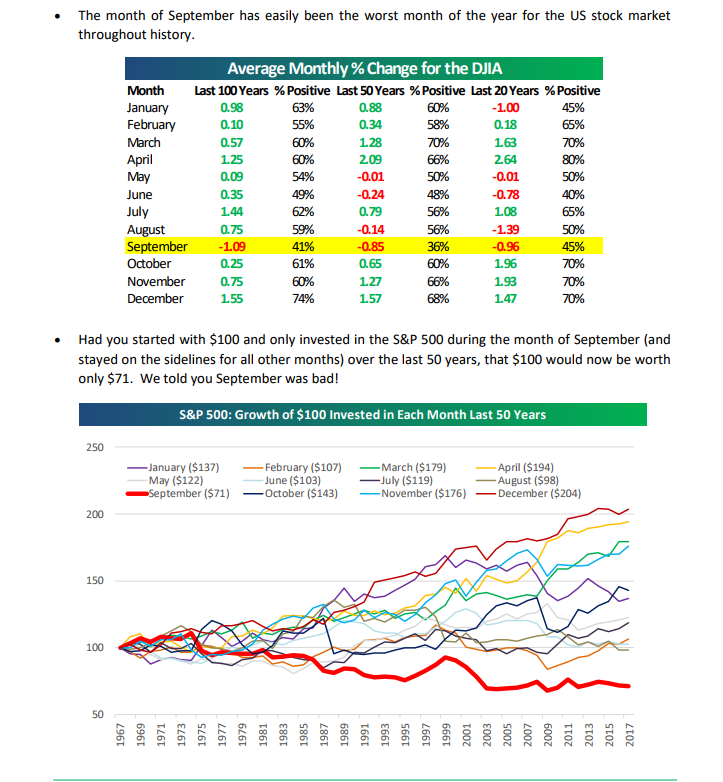 Wow! The only month that averaged negative results over the past 100 years happens to be the one we presently find ourselves in.