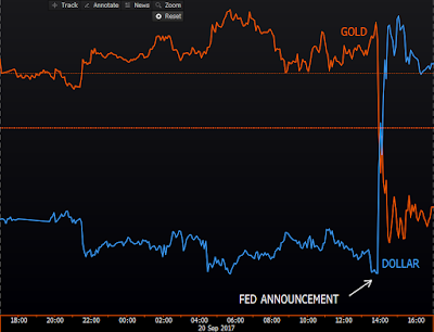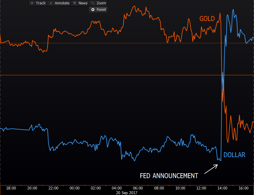 It’s going to be quite the task… The timing is about as good as it gets right now to get it started. They’re testing the water with 10 bill per month. While it’ll be interesting to see how fast market-driven rates rise going forward, at this stage of the cycle I believe we should expect essentially the same reaction (in equities, the dollar, gold, etc.) we’d see if it was a tightening via traditional measures (that is, just raising the policy rate). Basically, the rolling off the balance sheet inspires less aggressiveness on the fed funds rate… They’re in essence balancing the two and hoping not to create too much of a headwind for the economy..