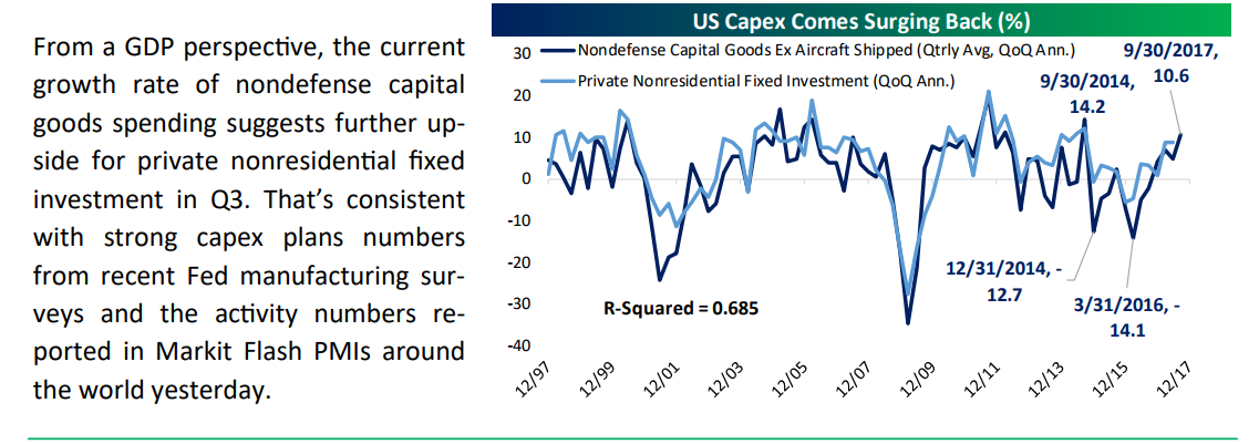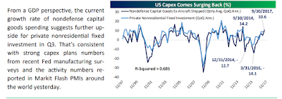 In our September 27th post we discussed the importance of capex (investing on the part of companies in business-expanding capital); an essential ingredient in a healthy, growing economy. The post serves as a nice, and very short, primer on capex.