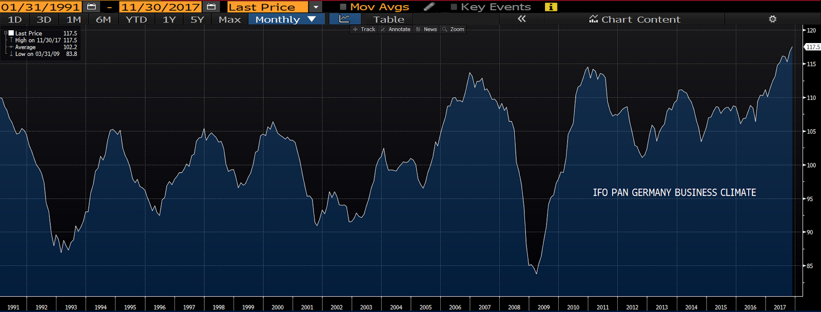 To add yet more fuel to those positive flames, German business confidence just hit an all time high: