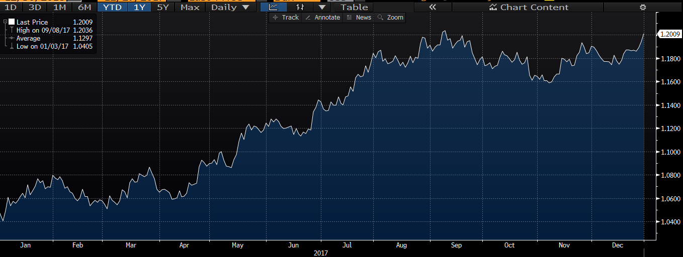 Interestingly, however, currency experts seem to disagree. Bloomberg’s December 26th article Picking FX Winners for 2018 captures the sentiment: