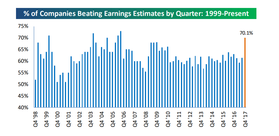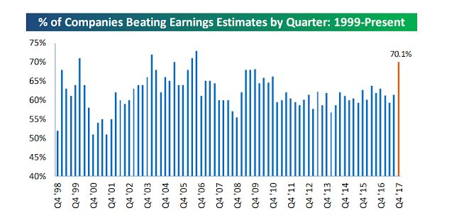 The fact that analysts were rushing to up their earning’s estimates coming into January makes the chart below all the more impressive: Chart Source: Bespoke Investment Group