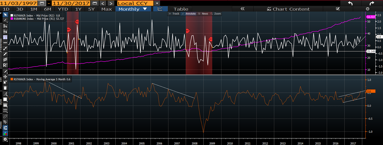 2. Prospects for deregulation: The President has made it clear that deregulation will be a hallmark of his term in office, plus, the incoming Fed Chairman has stated his intent to loosen financial regs.