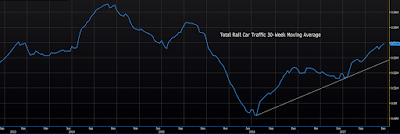 2. Transportation: Per the charts above, goods (as are people) are moving across the roads and railways (not to mention airways) of America. Of course this is consistent with our macro model’s presently high score, and, thus, speaks to the present strength of the economy. Transportation companies (ground, rail and air) are well represented in our core industrials ETF.