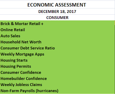 In terms of what our system tracks: 71% of our model is comprised of hard (jobs numbers, housing starts, industrial production, etc.) and soft (sentiment) data related to consumer and business activity, to inflation, to general financial stress, to commodity trends and to “other/general economy”. The remaining 29% is devoted specifically to U.S. equity market internals.
