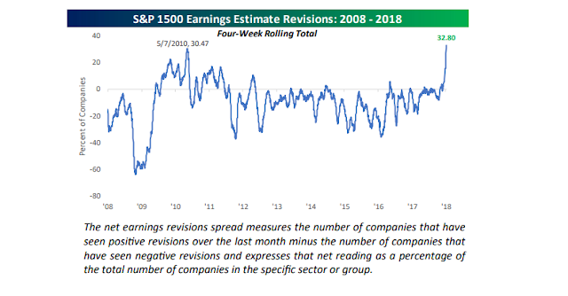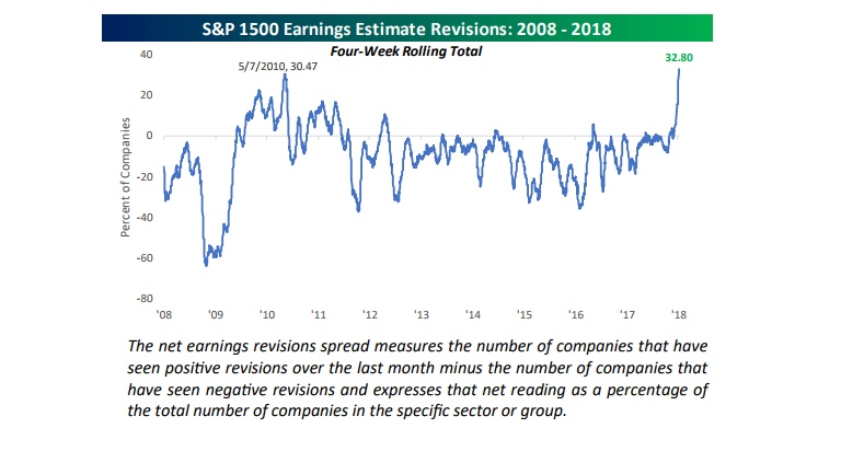 And we’d say with good reason. If you read our year-end letter you know that our analysis suggests that conditions presently remain conducive to strong corporate earnings growth. Add the pending boost therein brought about by the new corporate tax structure and you have the makings of exceptionally good forward guidance.