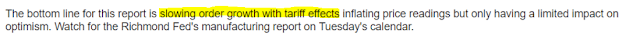 • It essentially introduces an element of tightening (threatening the pace/existence of the expansion) that gets directly in the way of the Fed’s attempts at restocking its ammunition with which to battle the next recession: This tightening is showing up in the expectations components of multiple business surveys; i.e., corporate decision makers have become guarded in their outlooks, citing the threat of a trade war as the source of their uncertainty.