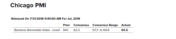 The Chicago PMI continues its torrid pace, at 65.5 in July to top Econoday’s consensus range and the strongest showing since January this year. New orders and production are also the strongest since January with backlogs the highest since October last year.