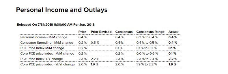 The consumer didn’t dip into savings to keep up spending which was a solid 0.4 percent with May revised sharply upwards, from an initial 0.2 percent gain to 0.5 percent. Spending on services rose 0.6 percent in June to offset what is a small disappointment in today’s report which is no change in spending on durables.