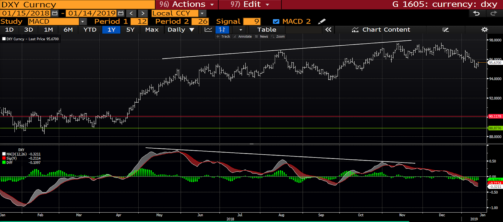 - Emerging market currencies have clearly bottomed and look to be establishing a new up trend. Emerging market equities are notably cheap relative to developed markets and, in an end-of-the-trade-war scenario stand to see substantial inflows during the course of this year. Which is a decidedly bearish scenario for the dollar.
