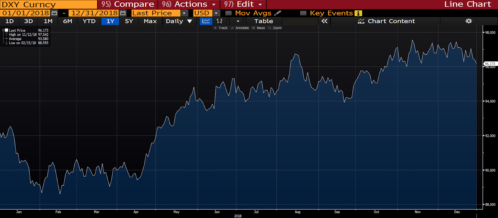 Here’s how the U.S. dollar index fared in 2018: