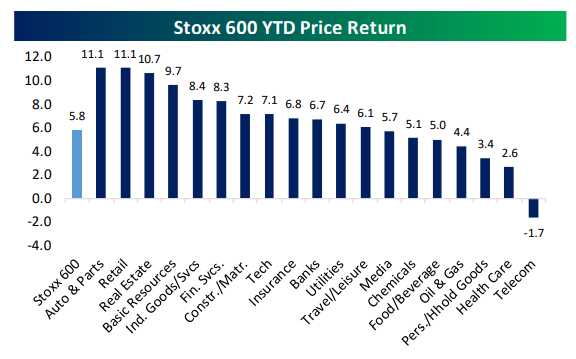 While global growth continues to wane, with Europe being no exception, European cyclical stocks are outperforming defensives (less economically sensitive) markedly.
