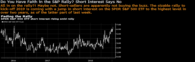 On occasion herein I’ll make reference to “short interest” or to the “shorts” when referring to traders who are betting that the market (or a given stock, commodity, etc.) is about to fall. Shorting is the act of selling borrowed shares with the expectation that they’ll be returned to the lender after the borrower repurchases them at a much lower price; the difference being pocketed by the borrower.