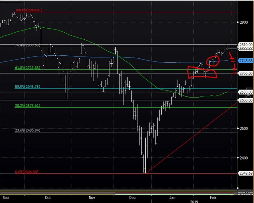 should find support at the 200-day moving average, then at 2700 if breached.