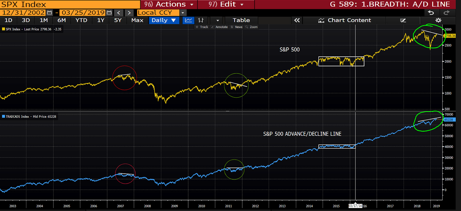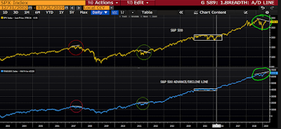 In terms of market breadth, the S&P advance/decline line continues to show a strong bullish divergence from price, that’s historically-speaking very positive.