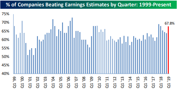Of the over 500 stocks so far reporting, in terms of earnings beating analysts’ expectations, so far so good: