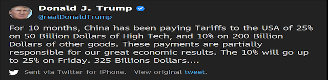 With all due respect, the President simply has this one entirely wrong, China has not been paying tariffs; that’s simply not how it works: Importers — in this case U.S. importers (ultimately their customers [per the second quote below] as they pass through the profit-killing tax) — pay tariffs.