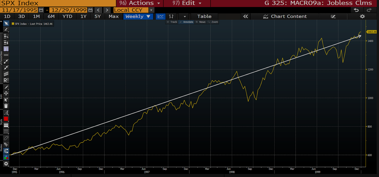 The market was barreling into all-time-high territory in 1995, while the economy was beginning to show some serious cracks.