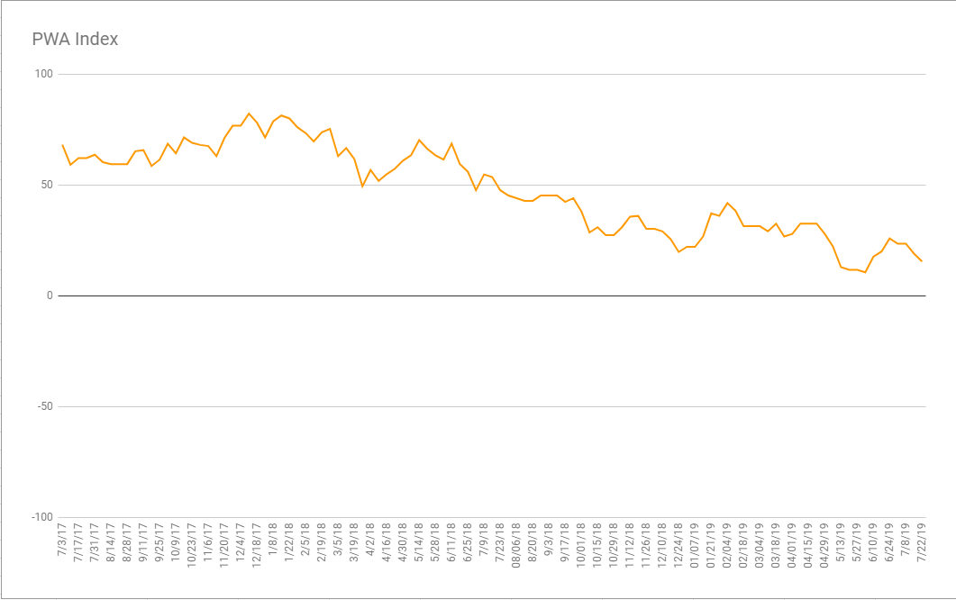 In a nutshell: While our macro index (below) says the economy’s still expanding (albeit at a markedly slower pace than a year ago), and the long-term trend in the broader market (further below) remains upward, I’m growing more skeptical (over the market’s long-term prospects) by the day…