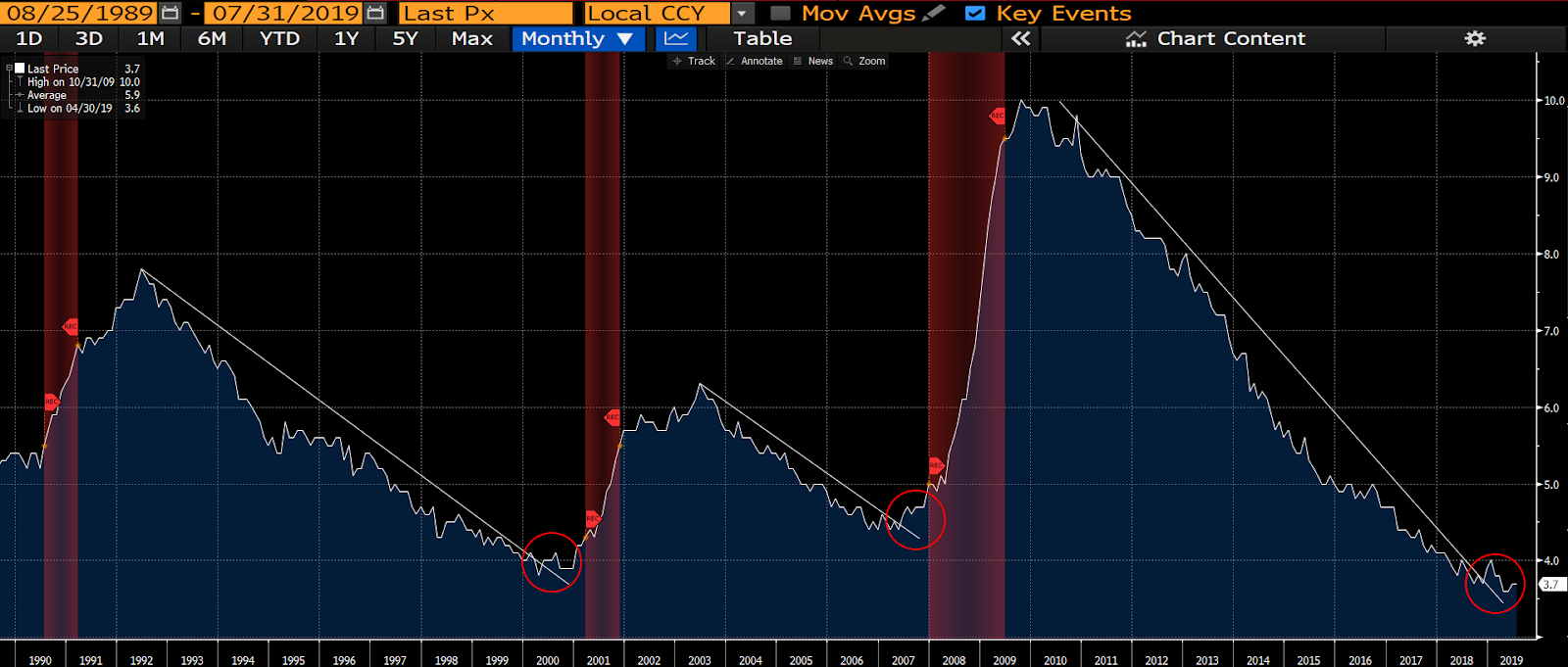 OMG! Man, you’d sure think that unemployment, of all things, would be a huge indicator of a looming recession. Well, as you can see, it was of zero help heading into the last three.