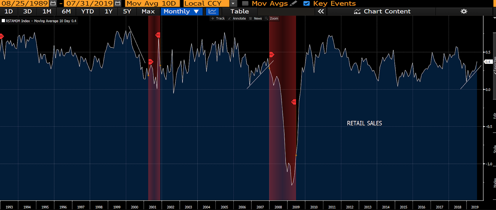 His message being that strong retail sales and low unemployment prove that there’s no recession in sight: